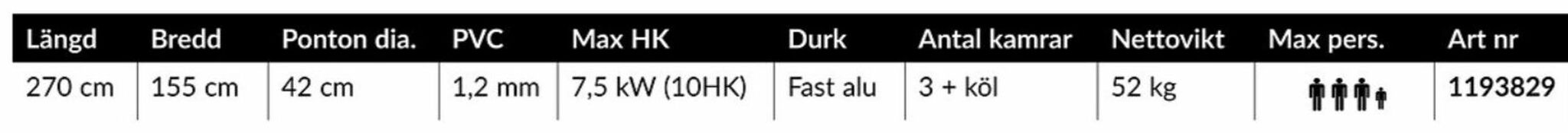 Aquaquick gummibåt Hunter HD1.2 med aluminiumdurk 270 cm